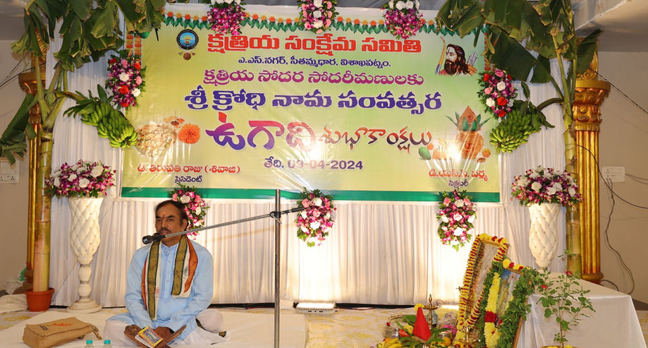 విశాఖపట్నం క్షత్రియ సంక్షేమ సమితి వారు 09-04-2024 వ తేదీ మంగళవారం శ్రీ క్రోధి నామ సంవత్సర ఉగాది వేడుకలు అత్యంత వైభవంగా జరిపారు. బ్రహ్మ దేవుడు తన సృష్టి ప్రారంభించిన తొలిరోజుకు ప్రతీకగా ఉగాదిని తెలుగు వారందరూ అత్యంత వైభవంగా భక్తి శ్రద్దలతో కుటుంబ సమేతంగా జరుపుకొనుట మన ఆచారము. చైత్రమాసం శుక్ల పక్షంలో సూర్యోదయ సమయంలో పాడ్యమి తిథి ఉన్న రోజు ఉగాది పండుగ పర్వదినం. ఈ పర్వదినం రోజున గోపూజ, తులసిపూజ, పంచాంగ శ్రవణం చేస్తే సంపద, ఆయుష్షు, పాపప్రక్షాళన, వ్యాధినివారణ, గంగ స్నాన పుణ్యఫలం వస్తాయని విశ్వసిస్తారు. ఈ పర్వదినం రోజున విశాఖపట్నం క్షత్రియ సంక్షేమ సమితిలో లక్ష్మీ నారాయణ పూజ, తులసి పూజ, గోపూజ జరిపారు. క్షత్రియ సంక్షేమ సమితి ట్రెజరర్ శ్రీ కంకిపాటి శ్రీహరి రాజు గారు వారి సతీమణి శ్రీమతి రామసీత గారు దంపతులు పీటలమీద కూర్చొని శాస్త్రోక్తంగా పూజలు చేయడం జరిగింది. అనంతరం శ్రీ వారణాసి వెంకటేశ్వర శర్మ గారిచే గారిచే " పంచాంగ శ్రవణం " జరిగింది. ఈ కార్యక్రమానికి సుమారు 200 మంది వరకు క్షత్రియులు హాజరయినారు. క్షత్రియ సంక్షేమ సమితి అధ్యక్షులు శ్రీ దాట్ల తిరుపతి రాజు గారు, చైర్మన్ శ్రీ MSN రాజు గారు, సెక్రటరీ శ్రీ DSP వర్మ గారు, ఉపాధ్యక్షులు శ్రీ ALN రాజు గారు (బుల్లిబాబు), శ్రీ N శ్రీనివాస రాజు గారు (కోడూరుపాడు), జాయింట్ సెక్రటరీ శ్రీ PVK హనుమాన్ రాజు గారు (అంజిబాబు), నెడ్ క్యాప్ చైర్మన్ శ్రీ KK రాజుగారు, మాజీ MLA శ్రీ P విష్ణుకుమార్ రాజు గారు, విశాఖపట్నం 14వ వార్డ్ కార్పొరేటర్ శ్రీ K అనిల్ కుమార్ రాజు గారు, డైరెక్టర్స్ DS వర్మ గారు మొదలైన వారు, కమిటీ సభ్యులు ఇంకా ఇతర క్షత్రియ పెద్దలు, క్షత్రియ మహిళలు, క్షత్రియ యూత్ సభ్యులు పాల్గొన్నారు. కార్యక్రమానికి వచ్చిన భక్తులందరకు ఉగాది పచ్చడి మరియు మధ్యాహ్నం లంచ్ ఏర్పాటుచేయడమైనది. ఉగాది మహోత్సవానికి విచ్చేసిన క్షత్రియ సోదర, సోదరీమణులందరికి సెక్రటరీ శ్రీ DSP వర్మ గారు ధన్యవాదాలు తెలియజేసారు.
